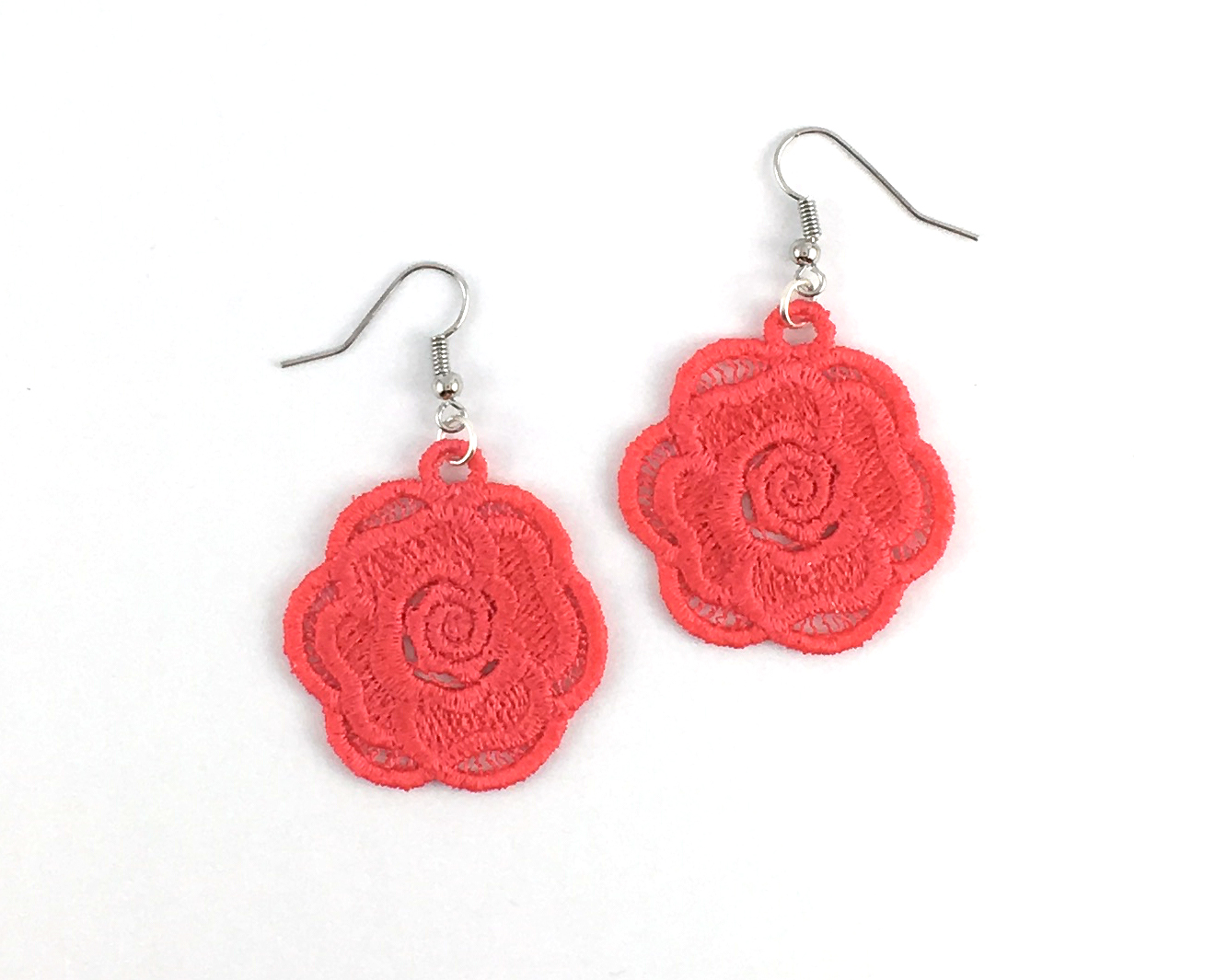 Orecchini in pizzo, di piccole dimensione. Due bellissime roselline, molto delicate. Un accessorio indispensabili per sentirsi sempre bella.